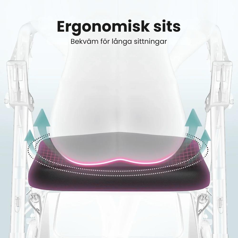 Modern, stilren och stabil rollator som ger stöd, balans och avlastning vid gång. Hjälper dig att röra dig tryggare och mer självständigt i vardagen.