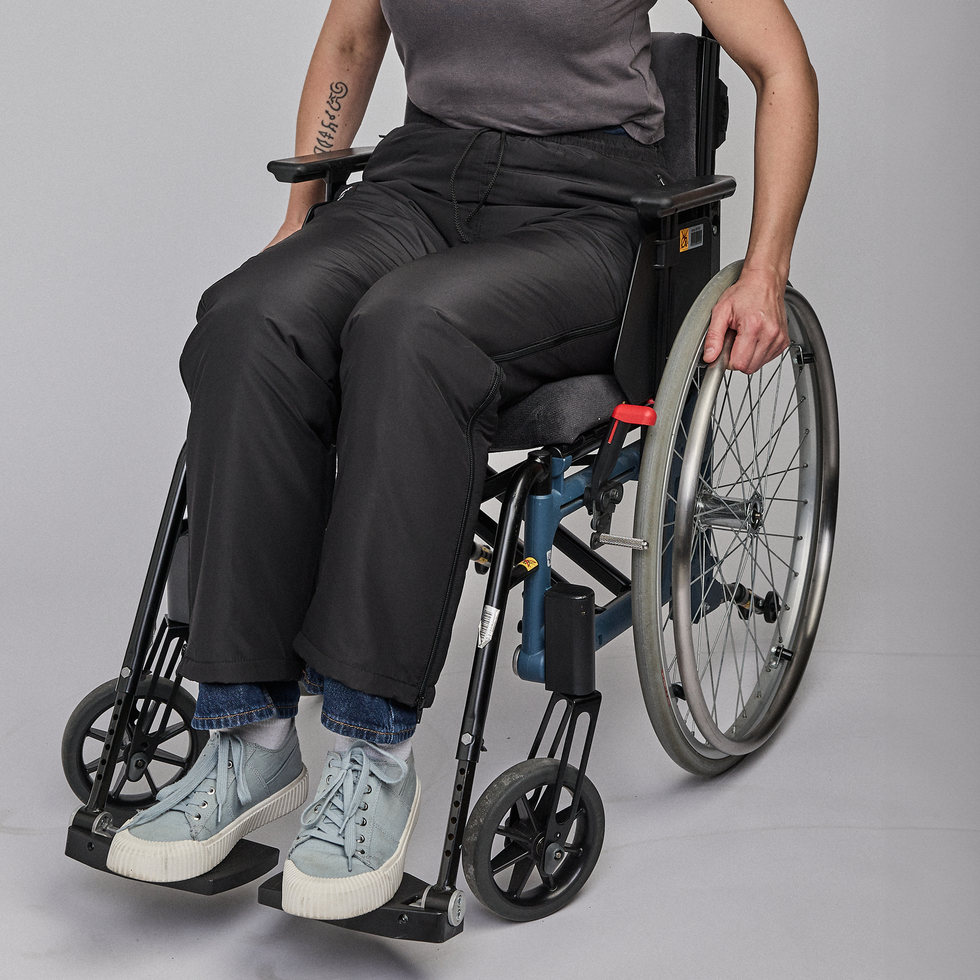 Byxan är särskilt användbar för dig som sitter i rullstol, har nedsatt rörlighet eller behöver enklare av- och påtagning i samband med rehabilitering, operation, gips eller sårbehandling.
