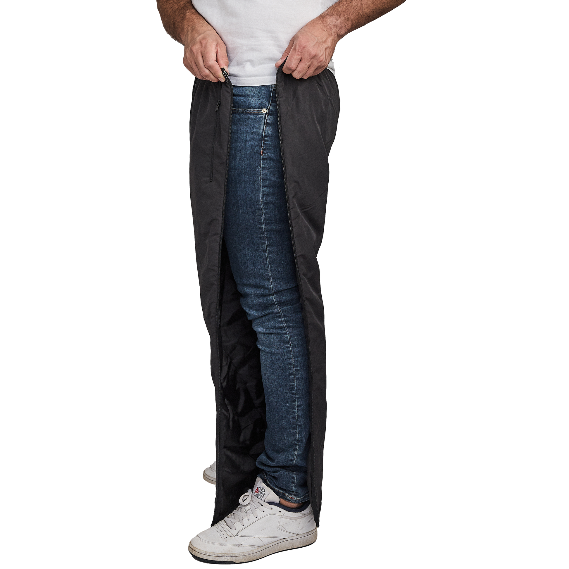 De långa, delbara dragkedjorna längs båda sidor gör byxan mycket enkel att ta av och på, även om du har skor på eller begränsad rörlighet. Detta minskar behovet av vridningar och lyft av benen, vilket är en stor fördel vid smärta eller stelhet.