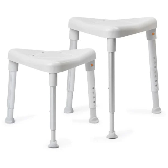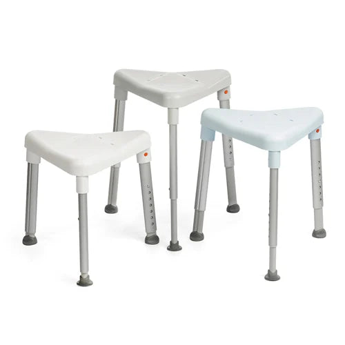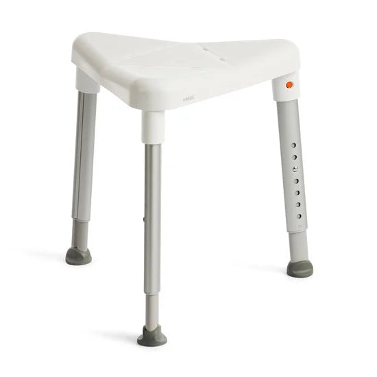 Med dess trekantiga form tar Etac Edge duschpall liten plats och passar in i trånga duschhörn. Pallen bjuder till sadelsittande med en rejäl sittyta för ökad stabilititet och är även ett bra val för att avlasta värkande höfter. Edge finns i en högre och en lägre höjdjusterbar variant.